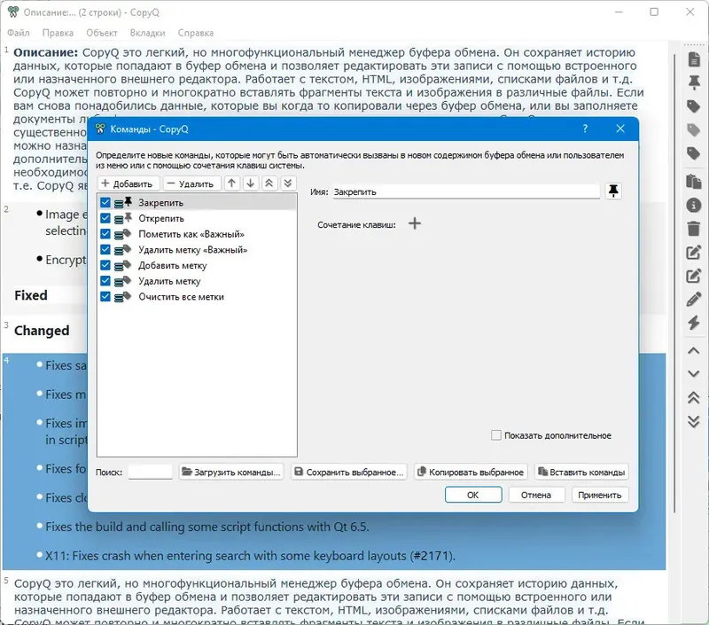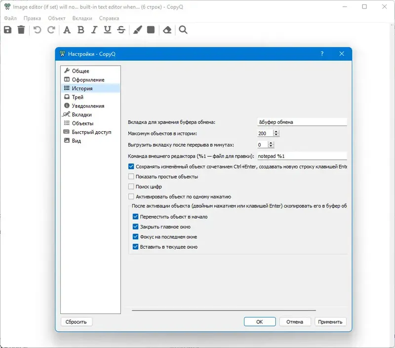 Описание CopyQ