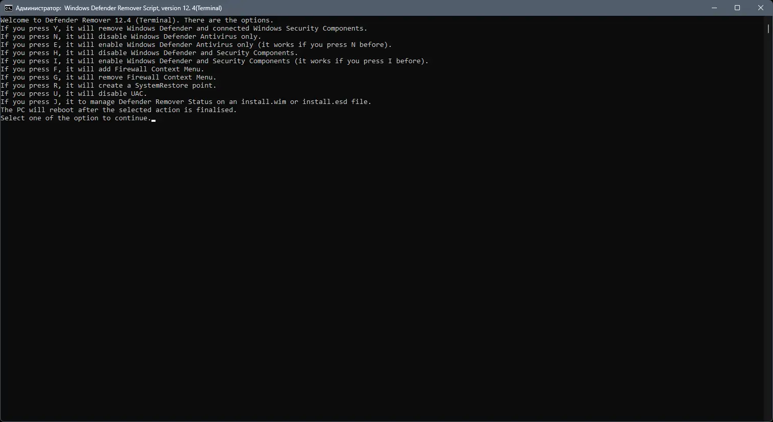 Для использования Defender Remover необходимо запустить программу от имени администратора, чтобы обеспечить доступ к системным файлам и службам. После запуска интерфейс программы напоминает консольный инструмент, где нужно выбрать нужный вариант отключения, нажав соответствующую букву. После подтверждения выбранных настроек программа автоматически перезагрузит компьютер и применит изменения. Важно помнить, что после отключения Защитника рекомендуется иметь альтернативное решение защиты системы, особенно при подключении к интернету. Для повторного включения защитных функций потребуется запустить программу и выбрать соответствующую опцию или включить их вручную через настройки Windows.