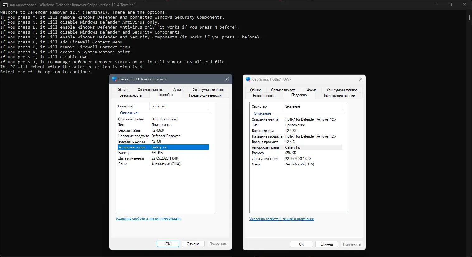 Defender Remover предлагает быстрый и безопасный способ отключения встроенной защиты Windows без необходимости редактирования групповых политик или реестра. Он подходит для пользователей, желающих управлять системной безопасностью при использовании сторонних антивирусных решений или для тестирования программ. Однако, поскольку программа полностью отключает защитные службы, она делает систему более уязвимой для угроз, поэтому рекомендуется использовать её только в случае необходимости и на доверенных компьютерах.