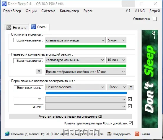 Для получения последней версии программы Don’t Sleep рекомендуется скачать ее с официальной страницы. Утилита совместима с различными версиями Windows и может использоваться как на домашнем, так и на корпоративном оборудовании. Скачать можно портативную версию, которая не требует установки и идеально подходит для использования на съемных носителях. После загрузки и запуска программы все настройки можно быстро изменить и применить без перезагрузки системы. Это делает Don’t Sleep универсальным инструментом для тех, кто ценит время и удобство в управлении системными функциями питания.