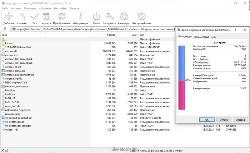 - Поддержка более 20 архивных форматов, включая ZIP, RAR, 7-Zip, ISO, TAR и другие.