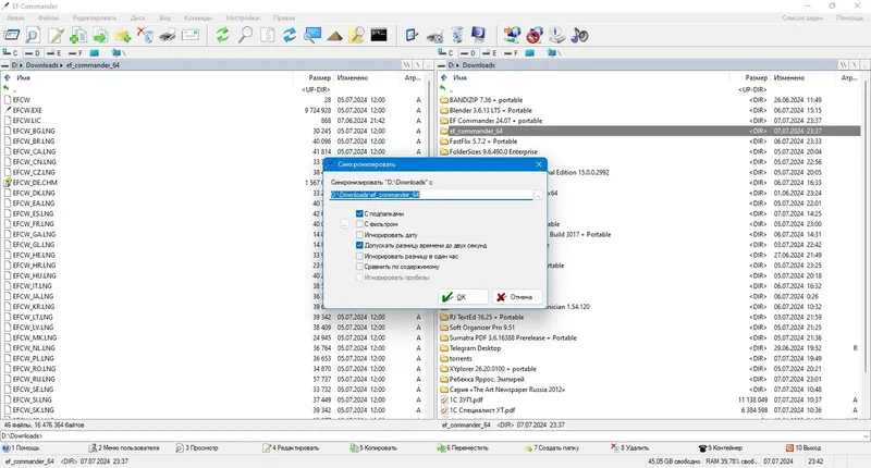 Работа с EF Commander начинается с запуска программы, после чего пользователь получает доступ к двум панелям для быстрого перемещения и управления файлами. Для работы с архивами достаточно выбрать нужный файл и использовать встроенные функции для распаковки или упаковки. Встроенный медиаплеер позволяет воспроизводить аудио и видео файлы без запуска сторонних программ, а функция просмотра файлов поддерживает более 30 форматов. Для расширения возможностей можно подключать плагины и внешние утилиты, такие как IrfanView или XnView, что значительно увеличит список поддерживаемых форматов изображений и документов. Управление файлами осуществляется с помощью контекстного меню, горячих клавиш и встроенных инструментов, что делает работу максимально удобной и быстрой.