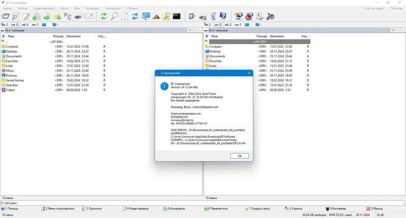 EF Commander — это мощный и универсальный двухпанельный файловый менеджер, который подойдет как для профессиональных пользователей, так и для тех, кто ищет удобное решение для управления файлами. Программа обладает богатым функционалом, включает поддержку множества форматов и инструментов, при этом остается легкой и простотой в использовании. Благодаря низким системным требованиям, EF Commander отлично работает даже на устаревших компьютерах, обеспечивая быстрый доступ к файлам и папкам.