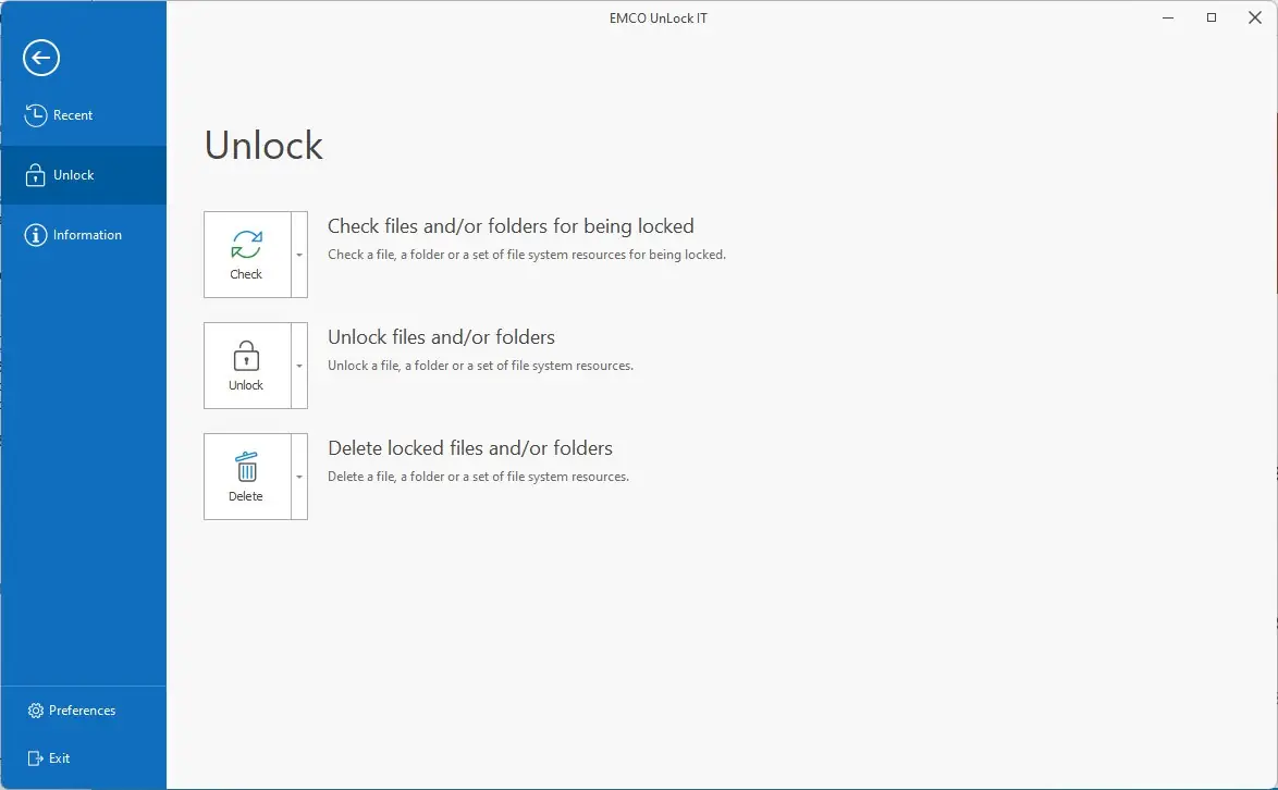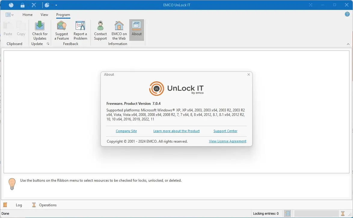 EMCO UnLock IT — это бесплатная утилита, предназначенная для разблокировки файлов и папок, которые оказались заблокированы системными процессами или сторонними приложениями. Она помогает устранить ошибки доступа, позволяет изменить, переименовать или удалить занятые ресурсы, а также завершить процессы, мешающие работе с файлами. Эта программа особенно полезна при работе с системными файлами, вирусами и вредоносным ПО, которые используют защиту от завершения своих процессов. Благодаря удобному интерфейсу и мощным инструментам, EMCO UnLock IT значительно ускоряет и упрощает управление файлами и папками на компьютере.