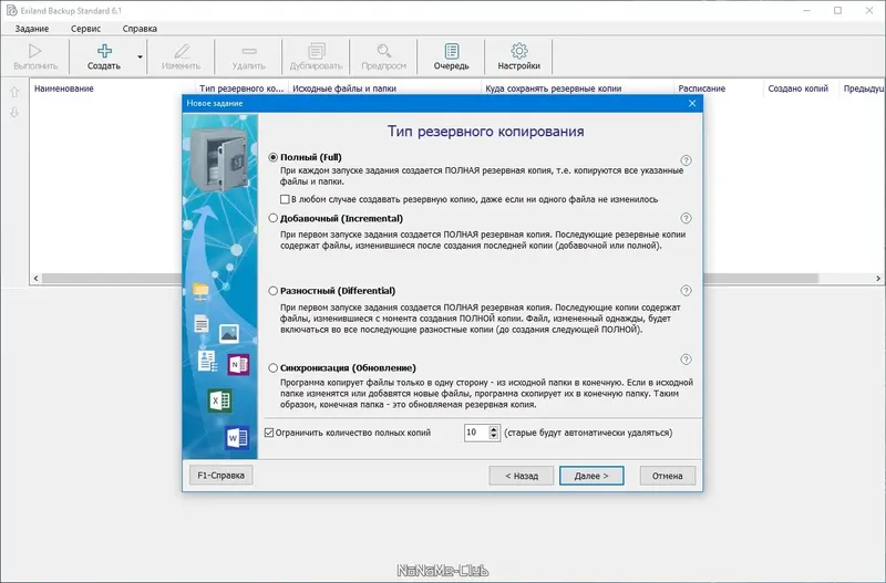 - Поддержка четырех типов резервного копирования для разных сценариев.