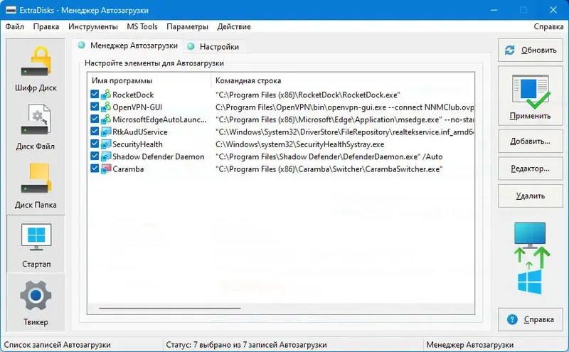 - Встроенные инструменты для управления автозагрузкой и настройками системы