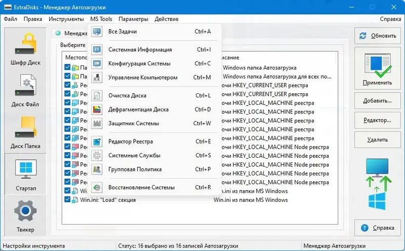 - Встроенный диспетчер запуска и управление автозагрузкой