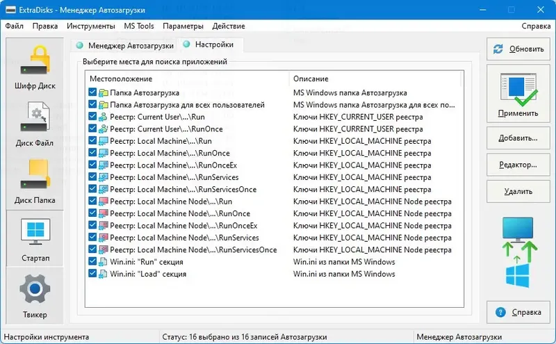 - Удобный диспетчер запуска виртуальных дисков и автозагрузки