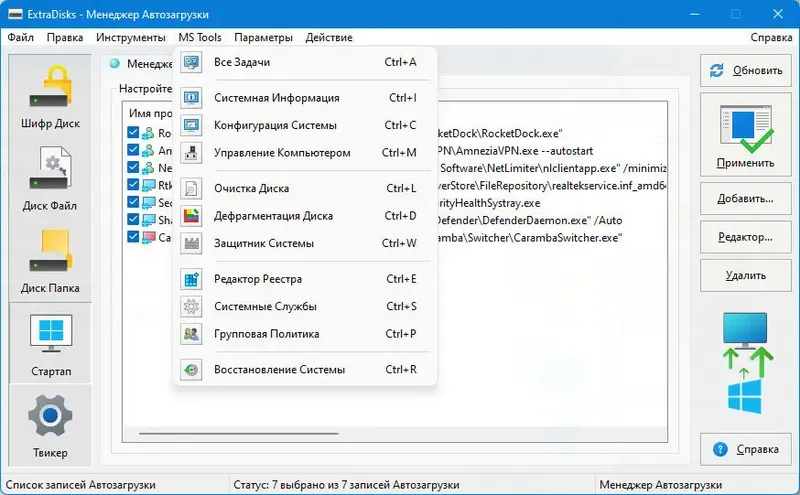 - Управление автозагрузкой и системными настройками