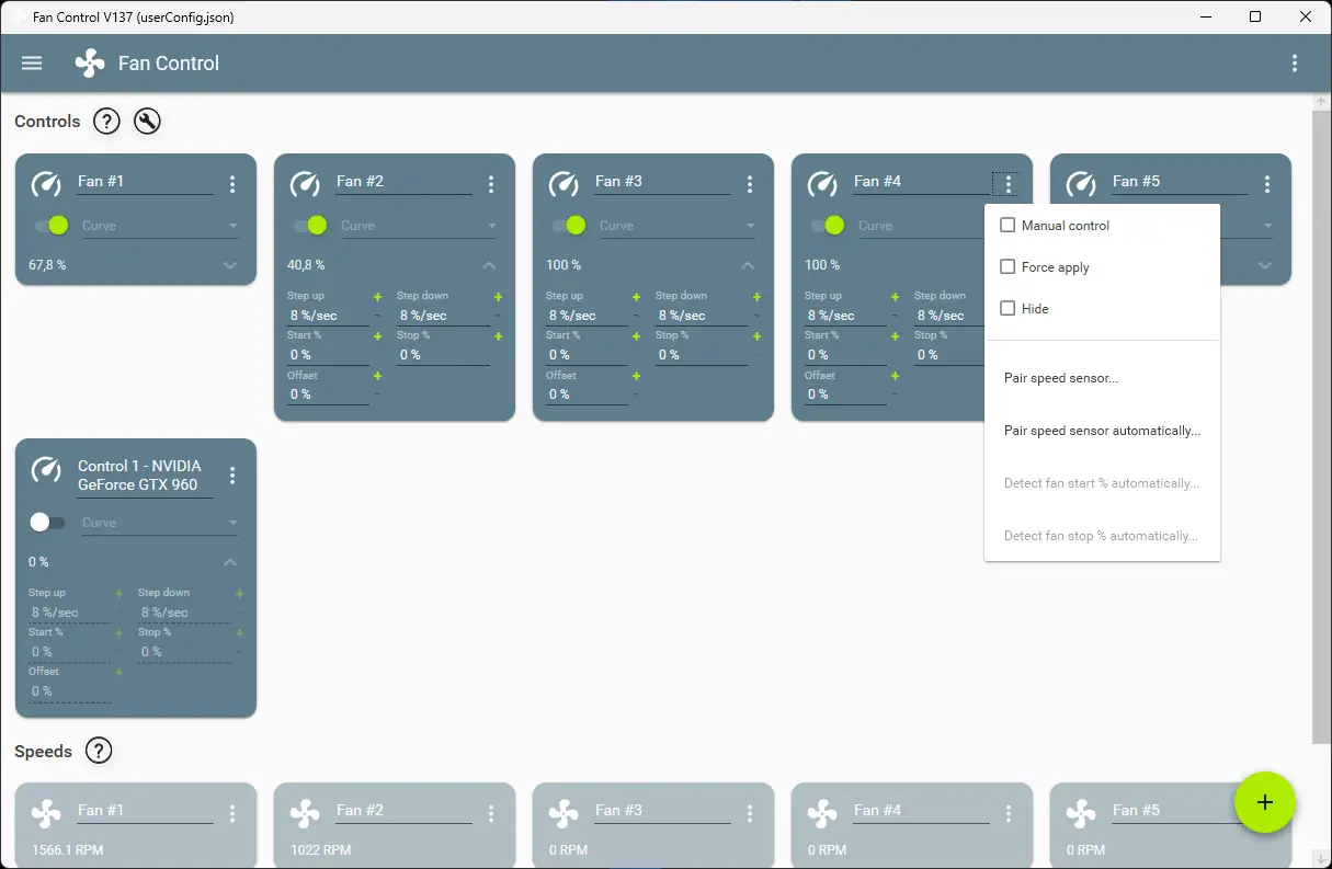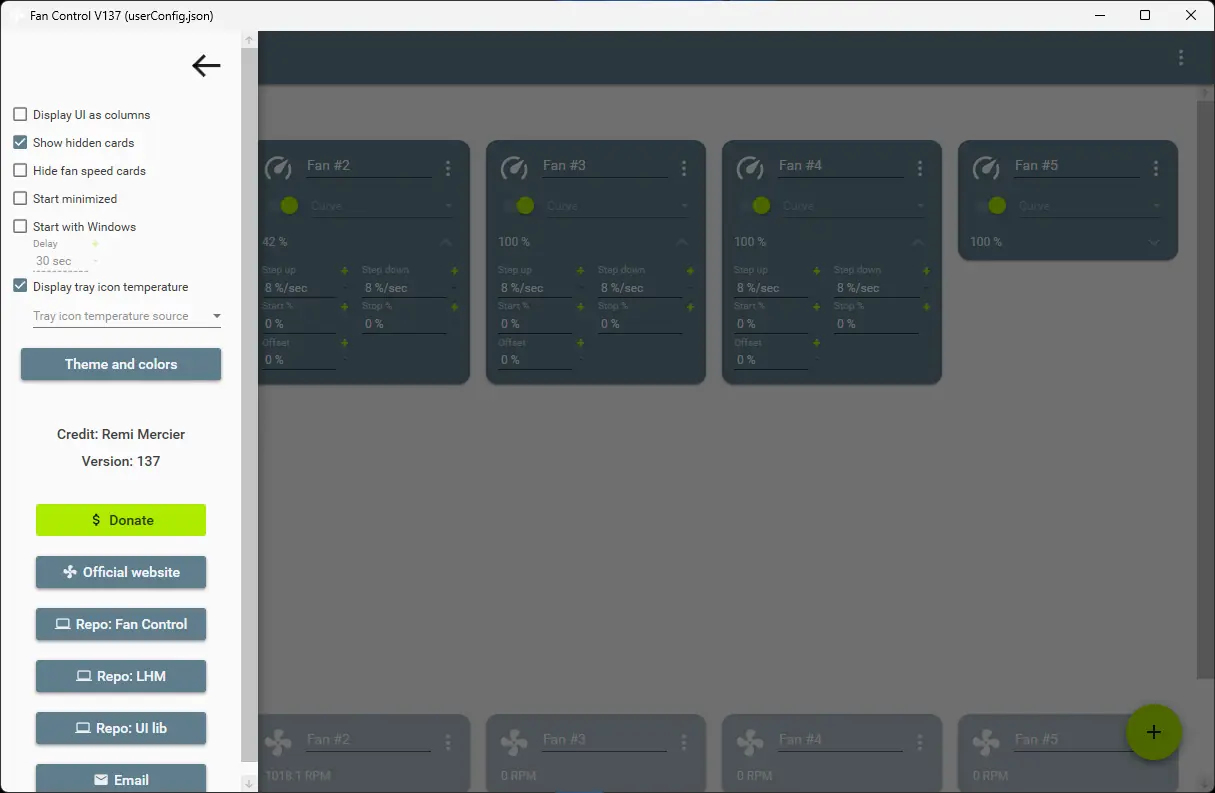 FanControl — это универсальный инструмент для настройки системы охлаждения, поддерживающий работу с различными датчиками температуры и скоростей вентиляторов. Программа обладает открытым исходным кодом и не требует инсталляции, что позволяет быстро и легко интегрировать её в любой компьютер. Благодаря возможности создания нескольких профилей, пользователь может адаптировать работу вентиляторов под разные сценарии использования, такие как игры, работа с тяжелыми приложениями или простое серфинг в интернете. Встроенный мастер настройки помогает быстро найти все датчики и настроить их параметры, обеспечивая эффективное охлаждение и снижение шума.