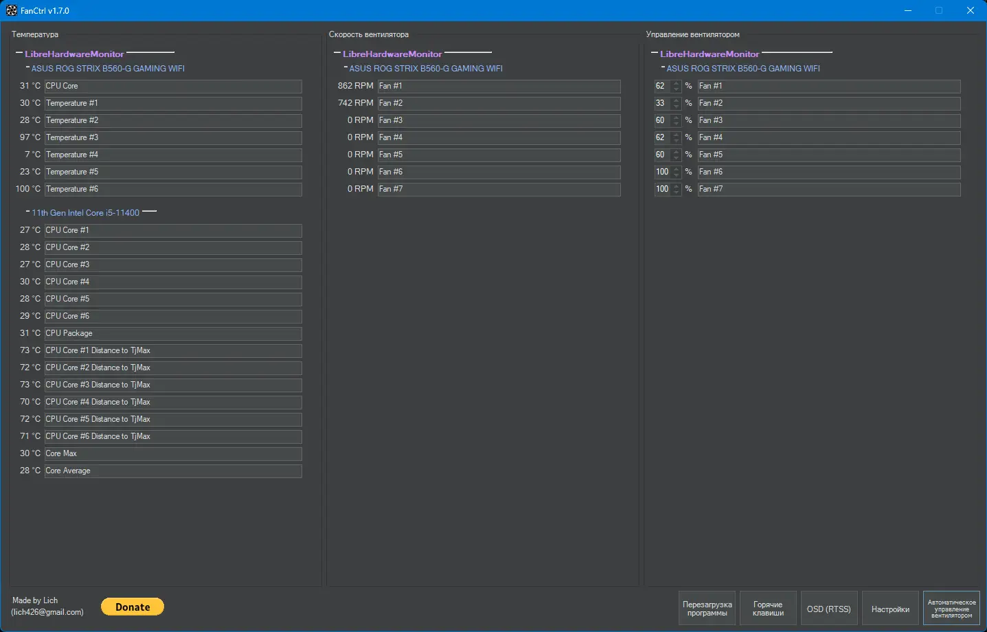 FanCtrl — это удобное программное обеспечение, предназначенное для автоматического управления скоростью вентиляторов на компьютере. Оно позволяет оптимизировать работу системы охлаждения, снижая шум и расход электроэнергии, а также повышая эффективность охлаждения в зависимости от температуры компонентов. Программа особенно полезна для тех, кто хочет иметь полный контроль над вентиляторами своего ПК без необходимости в сложных настройках BIOS или сторонних утилит.