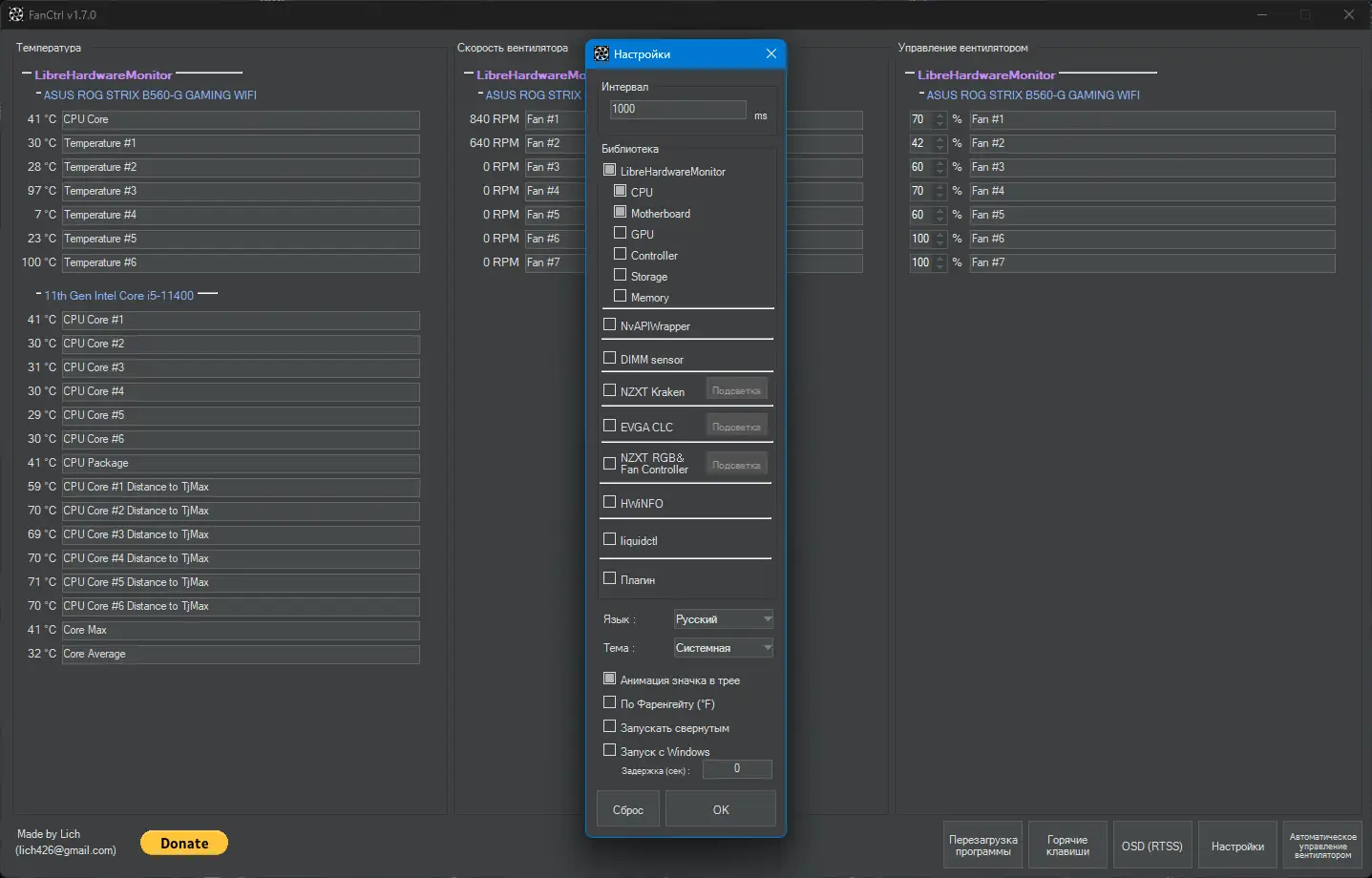 - Поддержка различных моделей вентиляторов и чипсетов.