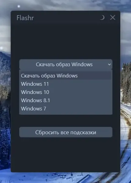 Flashr — это удобное программное обеспечение, которое позволяет скачивать официальные образы Windows и записывать их на флешки. В отличие от аналогов, оно обладает простым интерфейсом и не требует сложных настроек или специальных навыков. Программа обеспечивает быстрый доступ к последним версиям операционной системы и помогает подготовить загрузочный носитель для установки или восстановления системы.