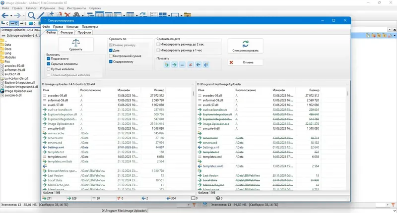- Множество инструментов для сравнения, синхронизации и группового переименования