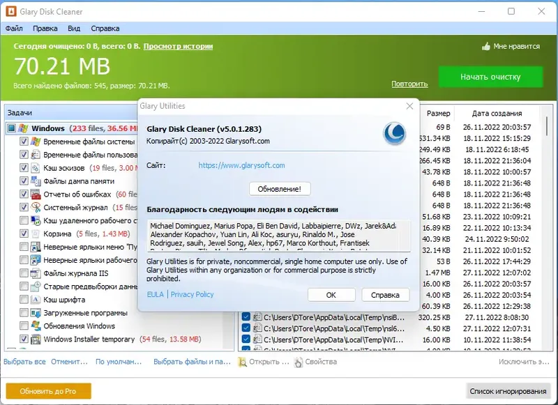 Glary Disk Cleaner — это универсальный системный утилит для очистки жесткого диска, которая помогает освободить ценное пространство и повысить скорость работы компьютера. Благодаря поддержке различных типов файлов и интеграции с популярными браузерами, программа позволяет быстро избавиться от ненужных данных и временных файлов. Ее функциональность включает удаление кэша веб-браузеров, файлов дампа памяти, старых обновлений Windows и других элементов, которые со временем накапливаются и занимают место на диске.