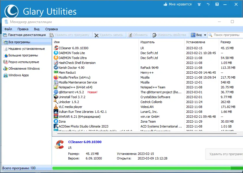 - Деинсталляция программ и управление автозагрузкой
