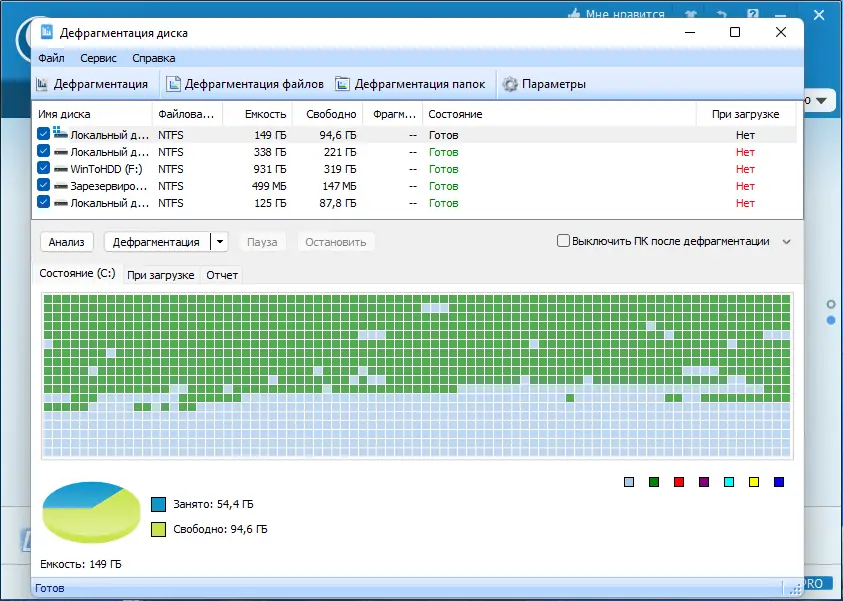 - Очистка диска и реестра для ускорения работы системы