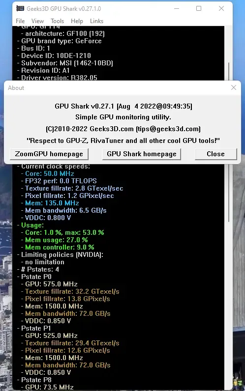 GPU Shark подходит для проведения стресс-тестов и диагностики системных утилит.