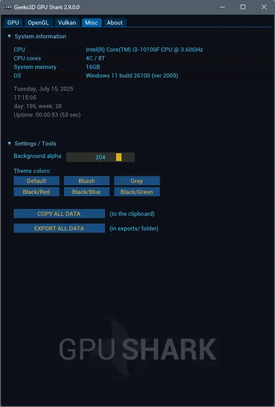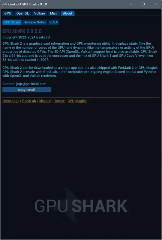 GPU Shark 2 является преемником популярной утилиты GPU Shark 1 и предназначена для комплексного мониторинга видеокарт. Она отображает актуальные данные о состоянии видеокарты, поддерживая API OpenGL и Vulkan, что позволяет получить полную картину работы графического процессора. Утилита совместима с современными видеокартами от NVIDIA, AMD и Intel, а также обеспечивает экспорт полученных данных для дальнейшего анализа.