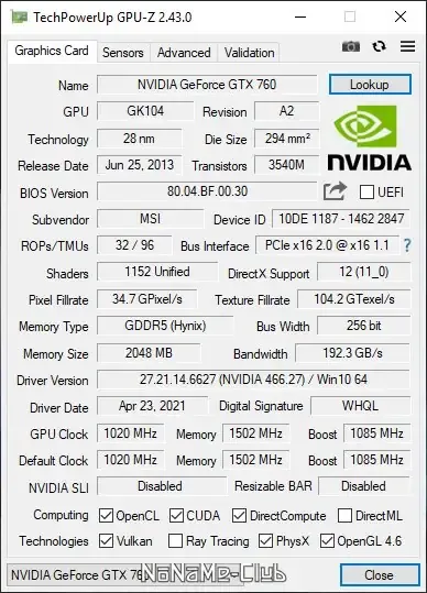 GPU-Z — это мощный инструмент для мониторинга и анализа видеокарт, который отображает исчерпывающую информацию о графическом адаптере. В программе представлены сведения о производителе, модели, типе видеопамяти и её объеме, а также о состоянии видеокарт NVIDIA, AMD и Intel. Помимо этого, утилита показывает параметры видеопроцессора, температуру, частоты работы и скорость вращения кулеров, что делает её незаменимой для тех, кто занимается разгоном и тестированием видеоустройств.