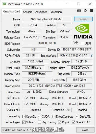 GPU-Z — это мощный инструмент для отображения полной информации о видеоплатах и графических процессорах различных производителей, таких как NVIDIA, AMD и Intel. Она позволяет получить сведения о моделях видеокарт, объеме видеопамяти, типе шины, рабочих частотах и поддерживаемых графических технологиях. Благодаря встроенным датчикам программа показывает температуру, скорость вращения кулеров и текущие показатели при разгоне, что делает её незаменимой для тестирования и мониторинга системы.