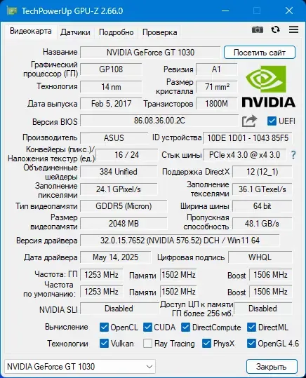 GPU-Z позволяет получить полную картину о состоянии видеокарты и помогает в диагностике и оптимизации системы.