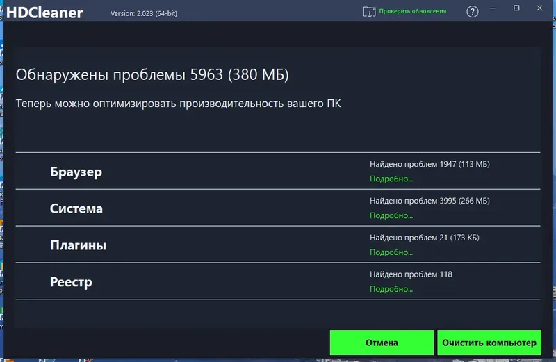 HDCleaner — это мощное и универсальное средство для оптимизации работы компьютера под управлением Windows. Программа сочетает в себе широкий набор инструментов для очистки системы, удаления ненужных файлов и повышения скорости работы ПК. Ее можно использовать как бесплатную альтернативу популярным утилитам, обеспечивая профессиональный уровень очистки и настройки системы.