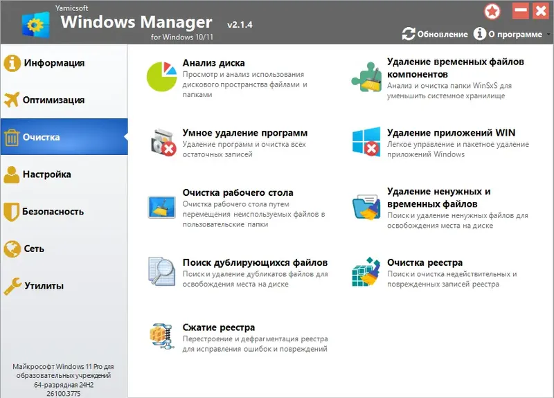 - Многофункциональность и универсальность инструментов для очистки и оптимизации.