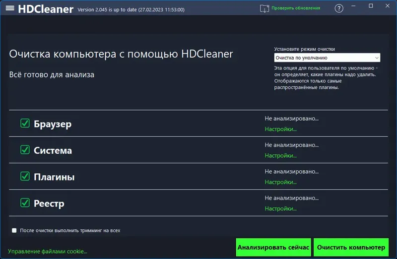 HDCleaner — это универсальный инструмент для системной оптимизации, созданный немецким разработчиком Kurt Zimmermann. Он позволяет безопасно очищать жесткий диск, удалять ненужные файлы, следы браузеров и приложений, а также управлять реестром Windows. В отличие от популярных аналогов, программа предлагает сопоставимый с профессиональными версиями функционал, при этом оставаясь бесплатной. HDCleaner оптимизирован для работы как с SSD, так и с HDD, что обеспечивает высокую производительность и надежность работы системы. Встроенные инструменты позволяют выполнять дефрагментацию, искать и заменять ключи реестра, а также создавать резервные копии для восстановления данных.