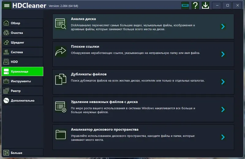 HDCleaner обеспечивает комплексное обслуживание ПК, что делает его незаменимым инструментом для повышения производительности и безопасности системы.