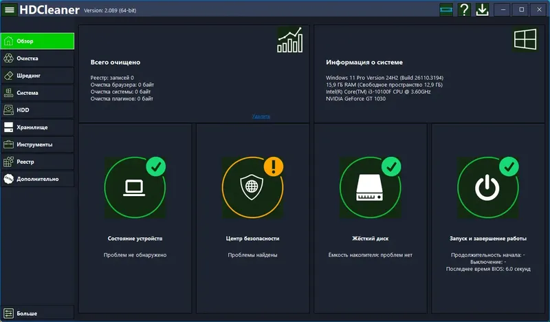 HDCleaner — это мощная системная утилита для оптимизации и очистки компьютеров под управлением Windows. Она включает широкий набор инструментов для быстрого и безопасного удаления временных файлов, очистки реестра, управления автозагрузкой и устранения различных системных ошибок. Программа предназначена для повышения производительности ПК, продления срока службы дисков и улучшения общего состояния системы.