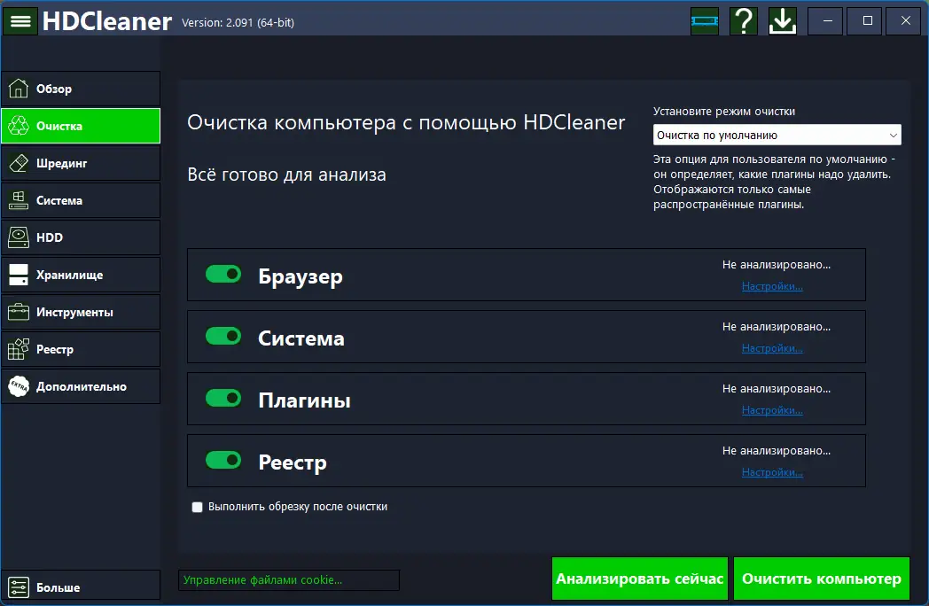 HDCleaner — это универсальный инструмент, сочетающий в себе мощный функционал и удобство использования. Он отлично подходит для быстрого и безопасного очищения системы, а также для тонкой настройки работы ПК. Благодаря широкому набору функций, программа способна заменить сразу несколько утилит и существенно повысить производительность системы. Однако, несмотря на многообразие возможностей, интерфейс может показаться новичкам немного сложным, а для выполнения некоторых настроек потребуется базовое понимание работы системы.