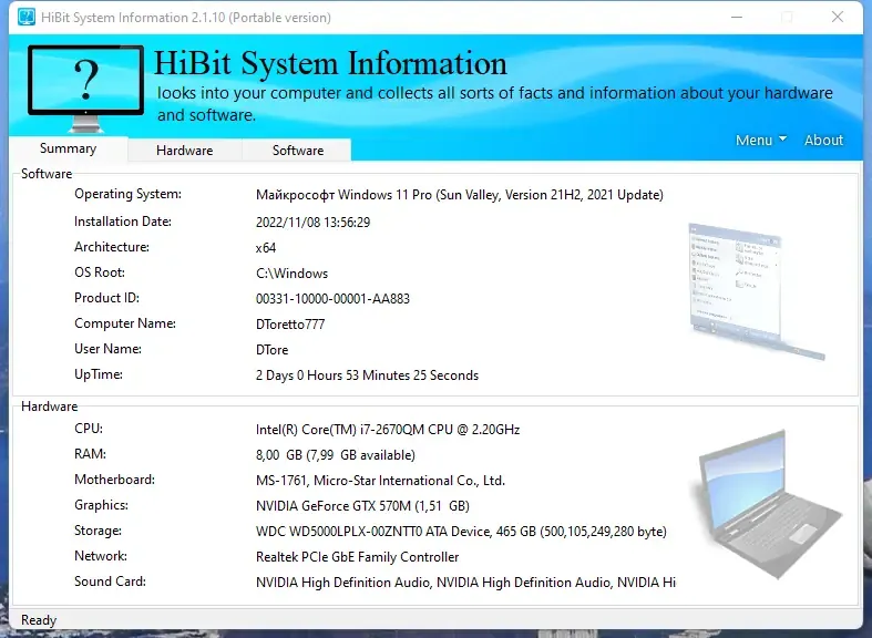 HiBit System Information — это мощная программа, предназначенная для получения подробной информации о комплектующих и программном обеспечении компьютера или ноутбука. Она позволяет пользователю быстро ознакомиться с характеристиками системы, что особенно важно при диагностике, обновлении или сборке ПК. Утилита подходит как для специалистов, так и для обычных пользователей, желающих контролировать состояние своей техники.