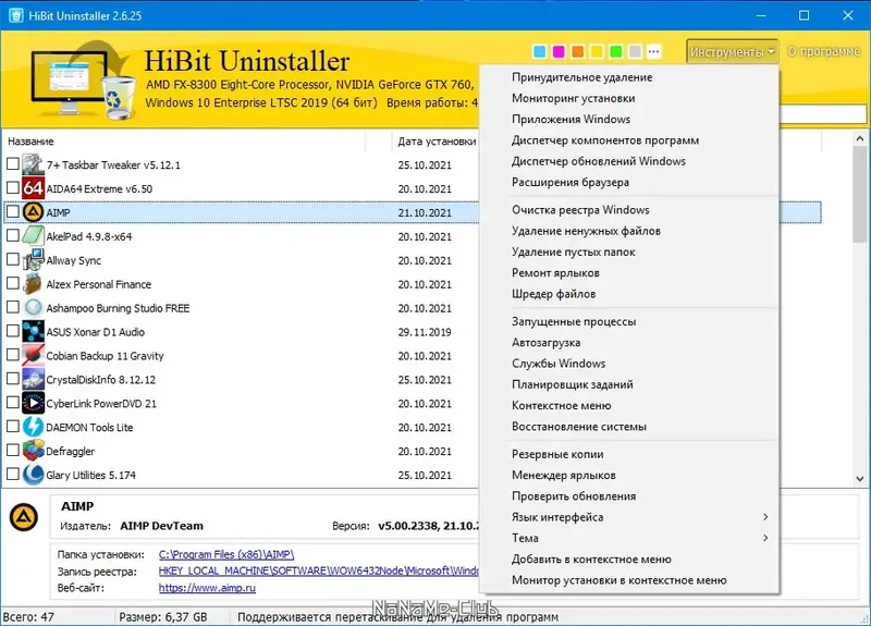 HiBit Uninstaller — это универсальный инструмент для удаления программ, который обеспечивает глубокую очистку системы от остатков удалённых приложений. Помимо стандартной деинсталляции, программа предлагает дополнительные средства для управления автозагрузкой, службами и точками восстановления системы. Встроенный менеджер процессов помогает контролировать запущенные задачи, а функция удаления приложений Windows Store делает работу с современными приложениями максимально простой и быстрой. Наличие портативной версии позволяет использовать программу без установки с любого USB-носителя, что делает её особенно удобной для специалистов и системных администраторов.