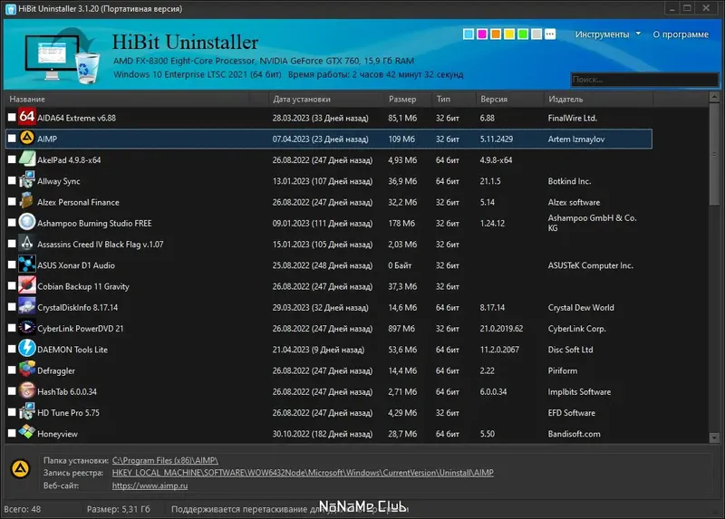 HiBit Uninstaller — это современная системная утилита, которая обеспечивает эффективное удаление программ, очистку реестра и управление автозагрузкой. Программа обладает удобным интерфейсом, что делает ее доступной даже для начинающих пользователей. Среди ключевых особенностей — возможность удаления приложений из Windows Store и расширенное сканирование на наличие остатков после удаления. Это обеспечивает максимально чистую систему без лишних файлов и хвостов.