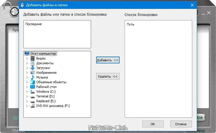 - Возможность скрывать и блокировать файлы и папки