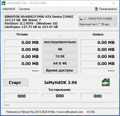 IsMyHdOK — это компактная и эффективная утилита для быстрого тестирования производительности жестких дисков, SSD и USB-накопителей. Благодаря своему небольшому размеру и портативности, программа не требует установки и легко запускается на любом совместимом устройстве. Она подходит как для профессиональных специалистов, так и для обычных пользователей, желающих проверить состояние своих накопителей быстро и без лишних усилий.