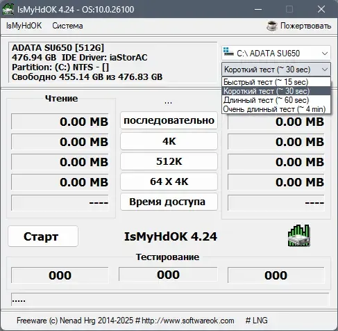IsMyHdOK — это универсальный инструмент для быстрого и точного тестирования производительности дисков без лишних настроек и сложностей.