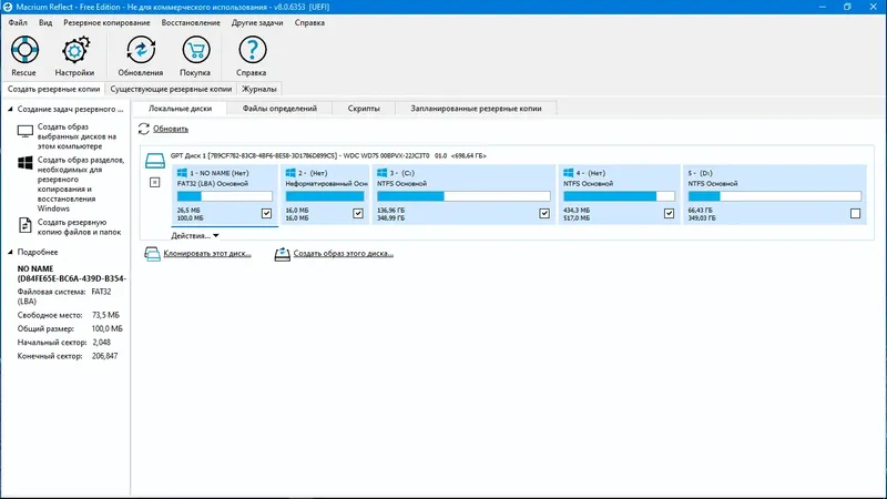 - Возможность создавать резервные копии для переноса системы на SSD