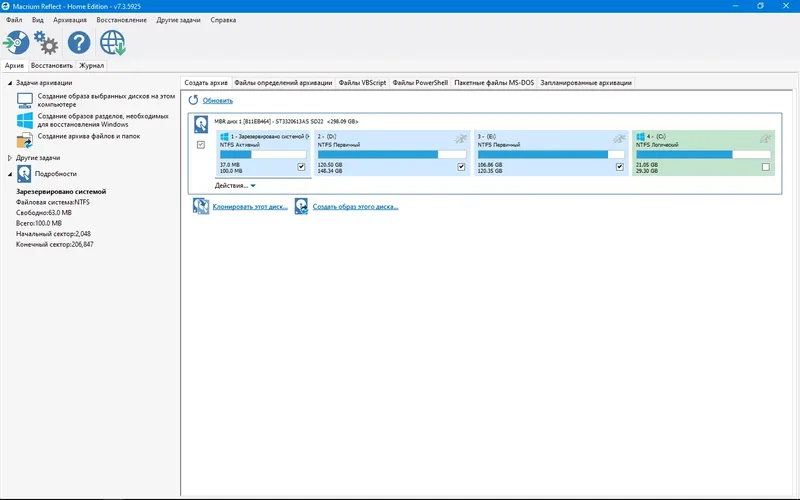 Macrium Reflect — это популярная системная утилита для резервного копирования и восстановления, которая позволяет создавать точные копии всех данных на компьютере. Программа обеспечивает быстрый перенос Windows 10 и других версий операционной системы, а также защищает важные документы, фотографии, музыку и почтовые сообщения от потери. Ее можно использовать для создания резервных копий на локальных дисках, сетевых хранилищах или на внешних носителях, таких как USB-устройства и DVD. Высокая степень сжатия и шифрование с помощью AES 256-бит гарантируют безопасность и эффективность работы.