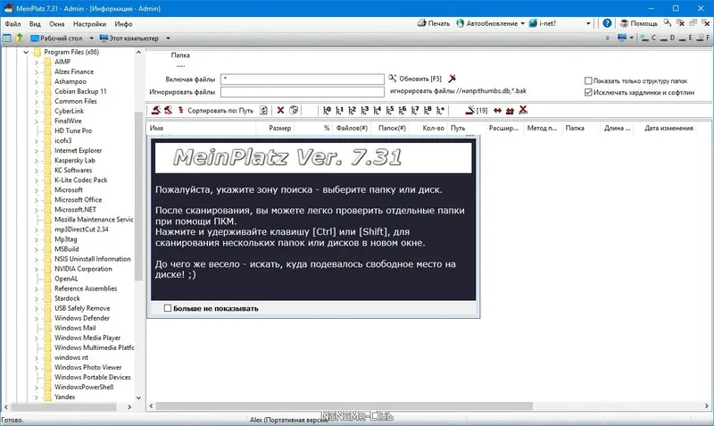 Для начала работы с MeinPlatz необходимо запустить программу, после чего она автоматически проведет сканирование выбранных дисков или папок. В процессе анализа пользователь сможет видеть прогресс и получать подробные отчеты о занимаемом пространстве. После завершения сканирования доступны функции сортировки и фильтрации данных по различным критериям, а также возможность распечатать или экспортировать результаты. Утилита не требует сложных настроек и идеально подходит для быстрого выявления крупных файлов или папок, занимающих слишком много места.