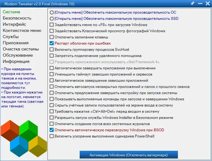 Modern Tweaker — это эффективное решение для тех, кто хочет максимально раскрыть потенциал своей системы.