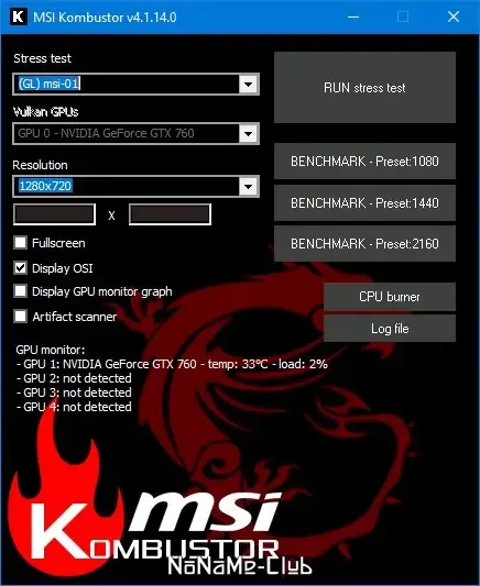 MSI Kombustor позволяет как проверить производительность видеокарты, так и определить ее стабильность при экстремальных нагрузках.
