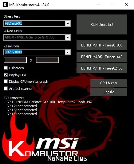 Как пользоваться MSI Kombustor