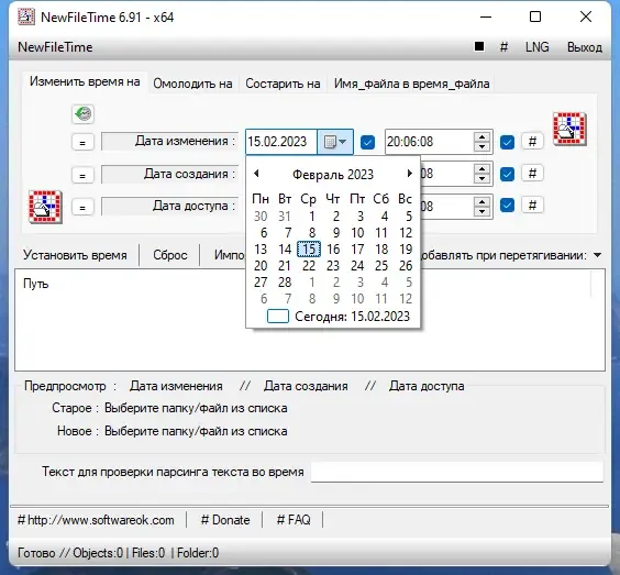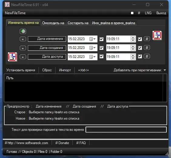 NewFileTime — это легкая и портативная утилита, предназначенная для быстрого и простого изменения даты и времени создания файлов и папок на компьютере. Эта программа не требует установки, что делает её удобной для использования на любом устройстве. С её помощью можно легко корректировать метаданные файлов, что особенно полезно при организации данных или исправлении ошибок в датах.