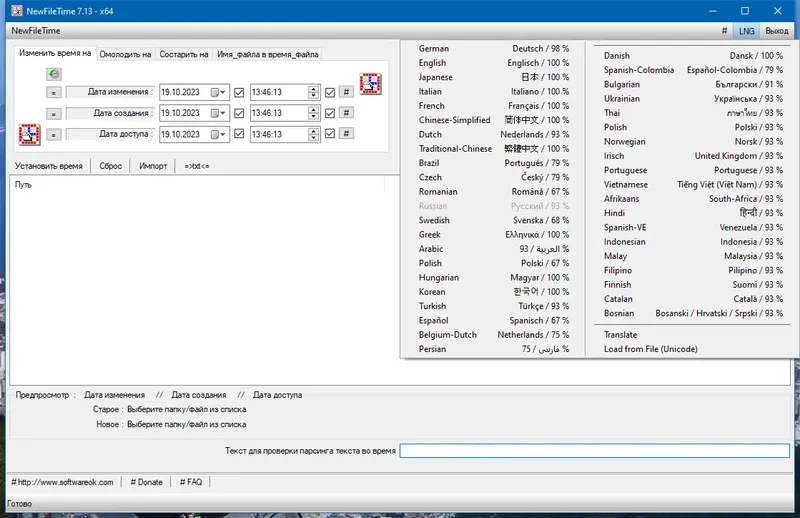 NewFileTime — это небольшая портативная утилита, предназначенная для быстрого и удобного изменения даты и времени создания файлов и папок на вашем компьютере. Эта программа не требует установки, работает мгновенно и поддерживает русский язык, что делает её особенно удобной для пользователей из разных стран. Благодаря простому интерфейсу и минимальному количеству настроек, вы сможете легко управлять метаданными файлов без лишних усилий.