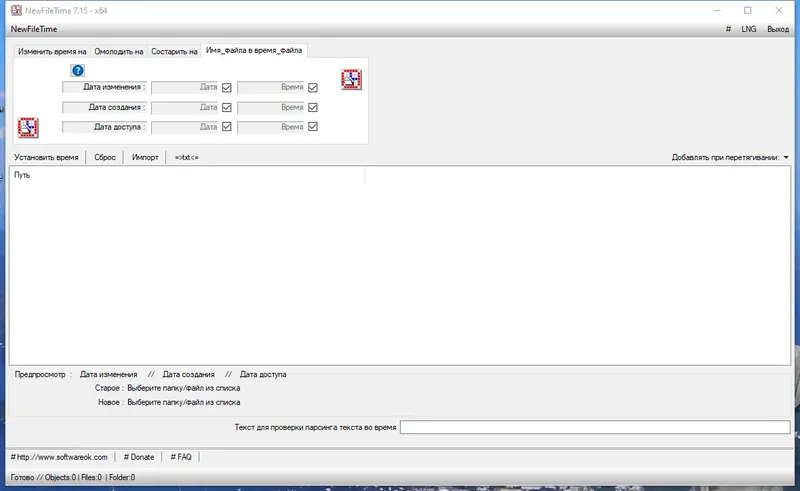NewFileTime — это небольшая портативная утилита, предназначенная для быстрого и простого изменения даты и времени создания файлов и папок на компьютере. Эта программа идеально подойдет для системных администраторов, пользователей и профессионалов, которым необходимо корректировать метаданные файлов без сложных настроек и установки. Благодаря удобному интерфейсу и минимальному набору функций, она позволяет легко управлять датами и сохранять изменения без лишних усилий.