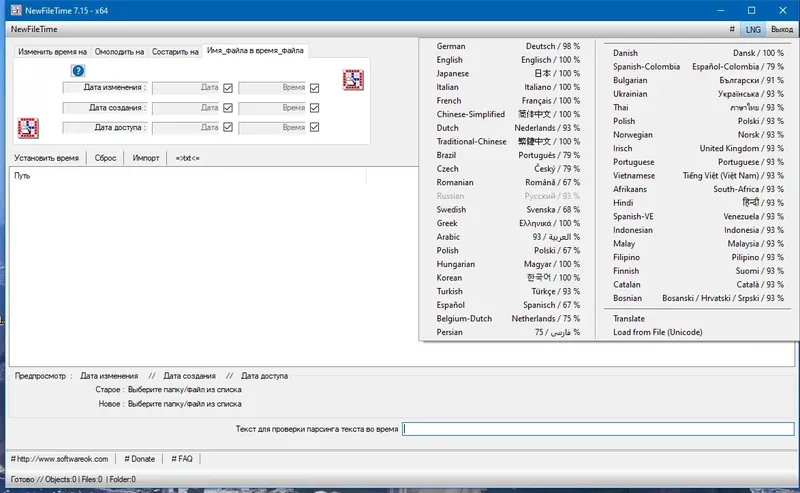 NewFileTime — это легкая и портативная программа, которая позволяет быстро изменить дату и время создания файлов и каталогов. Она не требует установки, что делает её удобной для использования на любом компьютере, а поддержка русского языка обеспечивает комфортную работу для российских пользователей. Программа обладает понятным интерфейсом, позволяющим добавлять файлы или папки, выбирать нужную дату и сохранять результат всего в несколько кликов. Это делает её популярным инструментом среди тех, кто ищет простое решение для корректировки метаданных.