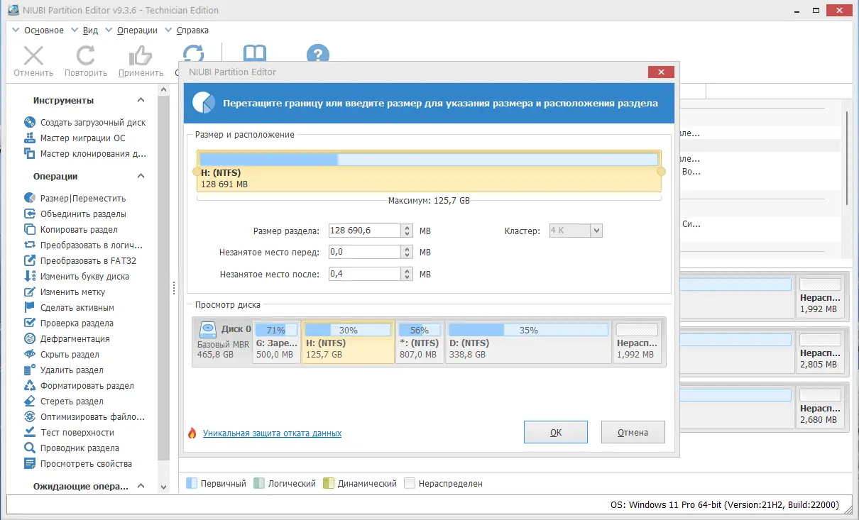 NIUBI Partition Editor — это бесплатная версия, которая предоставляет все основные функции для работы с разделами диска, а также профессиональную редакцию с расширенными возможностями. Эта программа подходит для тех, кто ищет бесплатное решение для управления дисковым пространством, а также для пользователей, желающих скачать бесплатно русскую версию. В отличие от других утилит, она обладает высокой скоростью работы и продвинутой защитой данных, что обеспечивает безопасность и эффективность при выполнении сложных операций с разделами.