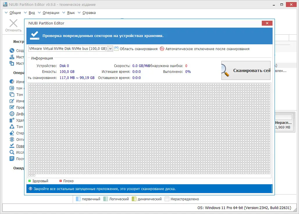 NIUBI Partition Editor — это универсальный системный утилит для работы с жестким диском, которая позволяет управлять разделами любой сложности. Ее функционал включает создание, форматирование, удаление, изменение размера, объединение и разделение разделов, а также их копирование и конвертацию. Программа обладает интуитивно понятным интерфейсом и высокой скоростью обработки операций, что делает ее незаменимым инструментом для оптимизации работы дисковой подсистемы. Бесплатная версия доступна для скачивания, что позволяет оценить все преимущества программы без дополнительных затрат.